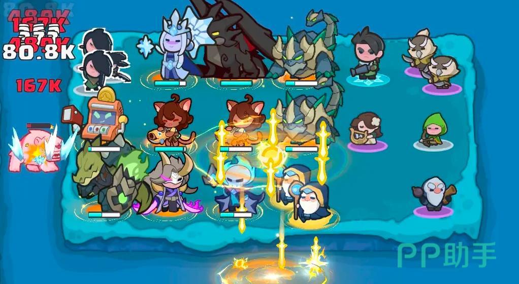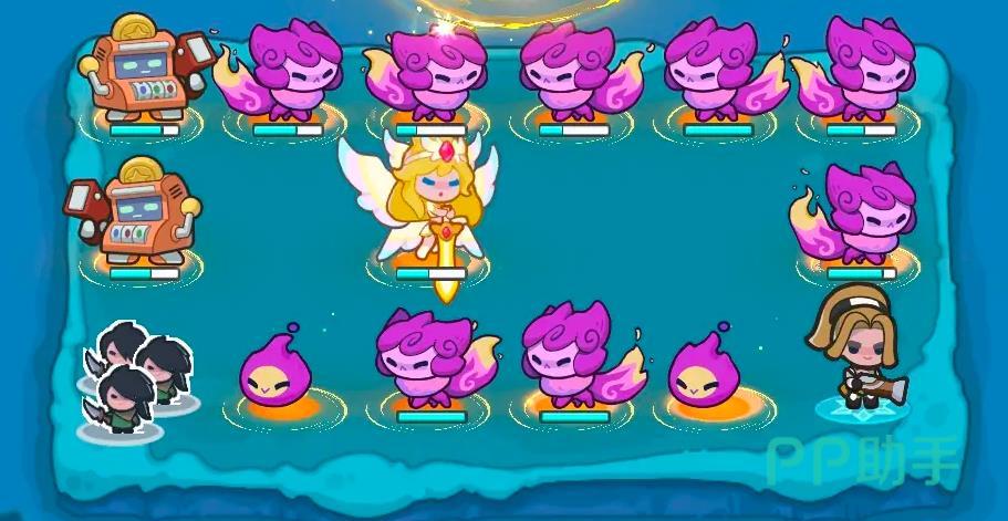 而想要进入该状态那是需要很长时间的,因此单个没有体系的天使是真不强,所以就需要搭配妖精和玄武这两位角色,这两位角色中玄武就是一个控制位角色,有它的控制在,就可以给到天使启动时间,之后的妖精则是一位可以直接提高启动速度的角色,它在配合上玄武之后是可以直接让登神状态提前来临的,非常的强悍,在它们两的辅助下,开局天使就会进入到登神状态然后开始割草,这就是第二套0氪强队了。