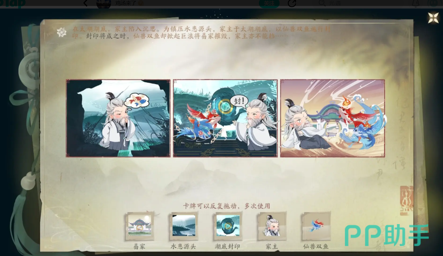最后,第三块拼图的元素有易家、水患源头、湖底封印、家主和仙兽双鱼。在拼接时,得先明白水患源头造成洪灾,湖底封印是阻止水患的关键。而家主和仙兽双鱼则是解除封印的主角。按照正确的顺序拼好,就能完成这个任务。