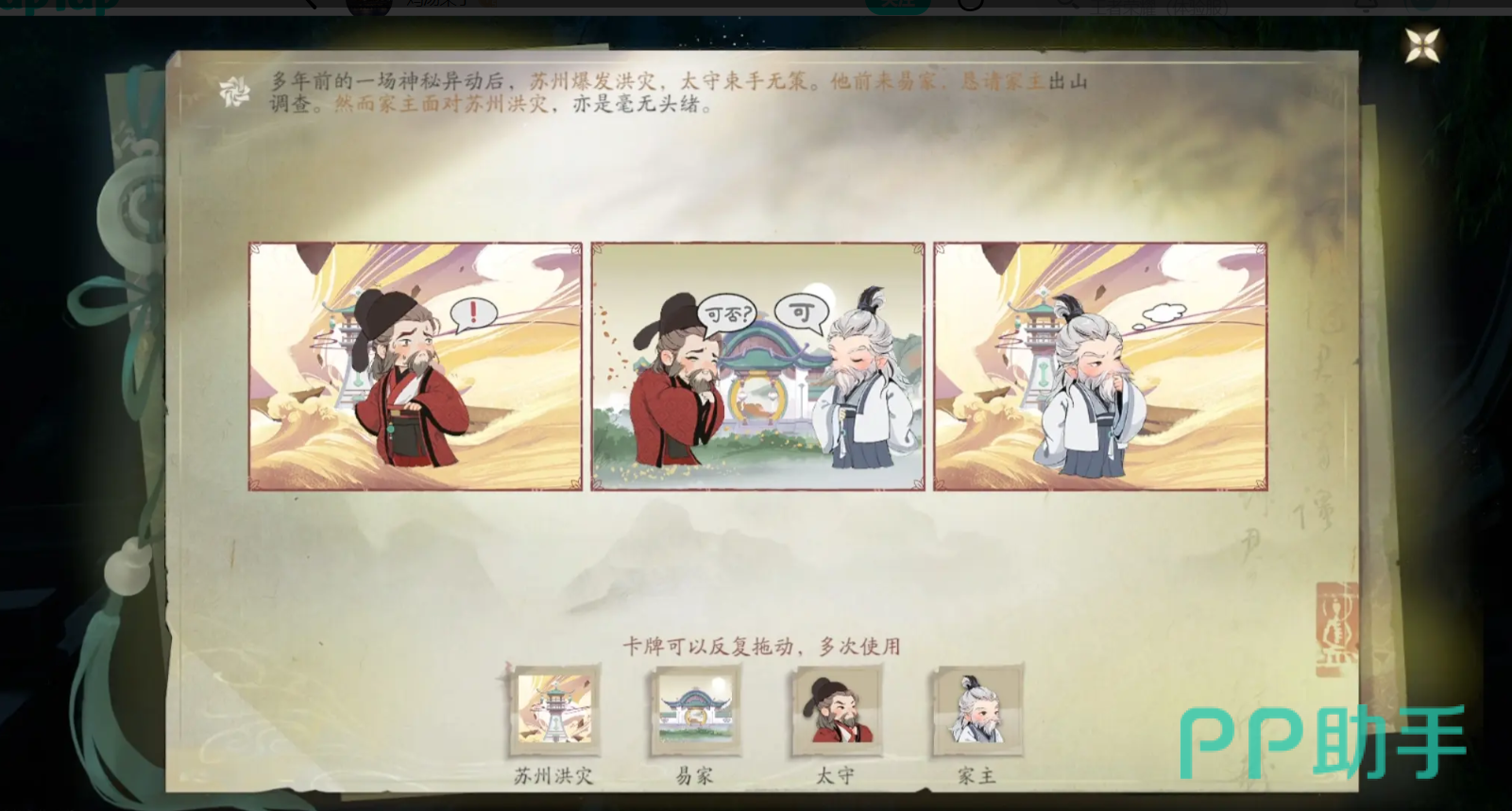 首先,第一块拼图上有苏州洪灾、易家、太守和家主。这些元素之间的关系非常重要。简单来说,苏州洪灾是背景,易家是关键人物,太守是负责的官员,而家主就是易家的领导者。把这些元素按照逻辑顺序排列好,就能解锁第一块封印。