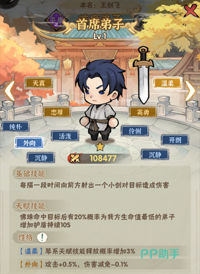 弟子的性格属性比较多样,大家可以利用转魂汤来对不同性格的弟子进行培养,举例来说,活泼和温柔是两种不同属性,后面给弟子搭配武器也会不一样。升级和升星是弟子比较重要的培养方式,等级提升后,弟子的固定属性会提升,而大侠对应的属性也会增加。