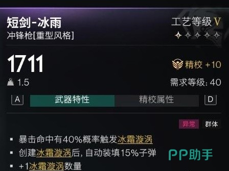 首先在配装之前,还需要了解一下冰雨这个武器,在使用时,如果暴击命中,是可以来触发冰霜漩涡的,还可以填充15%的,但要来扩大自己的攻击次数,这个几率大约有40%可以来触发,在使用这把武器时,是可以拥有无限子弹的,比较推荐喜欢重型风格的玩家们来使用,可以体验到暴击的爽感,在武器配装方面,比较推荐大家选择,可以提升武器精准度以及稳定性、射程的配件,会有更好的发挥武器的优势。