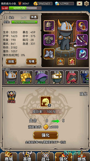 轻松好玩的英雄挂机游戏。玩家要不断参与战斗,打败那些大怪物Boss,它们会掉落装备,帮玩家提升战斗力,让玩家变得越来越强大。游戏里有好多角色可以选,给他配上厉害的武器和装备,再用上角色的特殊技能,就能打出很高的伤害。每个战斗场景都有新的挑战,有不同数量的魔王等玩家打。有新的对战模式等玩家玩,竖屏的玩法会带来不一样的乐趣,玩家可以打败更多关卡里的魔王。