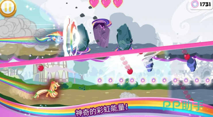 如果你是小马宝莉动画的忠实粉丝,那么这款跑酷冒险游戏绝对会让你爱不释手。故事发生在一个宁静的小镇,突然有一天神秘力量侵袭,小镇笼罩在一片阴霾之中。玩家需要通过跳跃、奔跑和滑行来唤醒小马们的彩虹能量,恢复小镇的和平与色彩。游戏中可以操控六只熟悉的可爱小马,除了充满挑战的跑酷玩法,还有精美的画面和引人入胜的主线情节,让整个冒险过程妙趣横生。