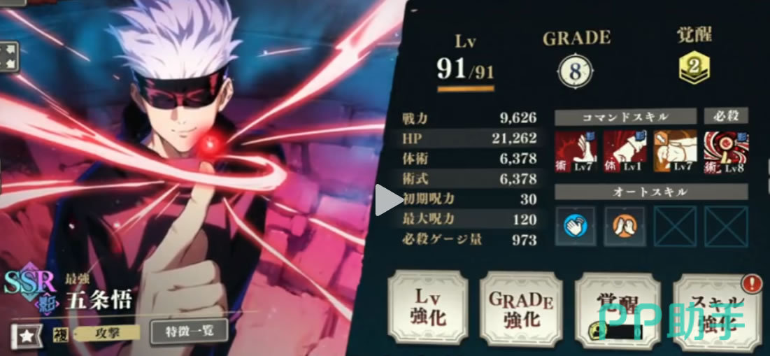 乙骨忧太也是一名强力大核,他的特点在于续航能力强大,虽然输出能力略低一点,但技能的治疗回血效果弥补了这一不足;虽然在竞技场这样的高爆发战场上表现不算特别亮眼,但在副本战中由于生存能力出色反而能更为游刃有余的应付较多回合的战斗。