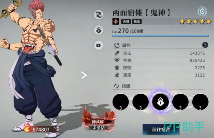 再一个要介绍的就是被封神的五条悟了,虽然说五条老师只能打7个回合,但他的基础数值太过于爆炸,可以说是碾压般的存在。在三技能叠加状态Buff之后,必杀技的全体轰杀威力非凡,而且充能速度会比其他角色更快,更早就能触发大招,在打boss或是PVP时能更早的发挥群伤作用。
