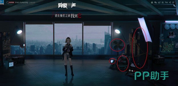 第一个是原本位于左下部位的视频播放器可以进行点击了,第二个就是右下角原本无法使用的放映机,现在点击会有彩色界面快速出现。而第三个线索就是在正常世界当中会快速旋转的电风扇已经无法正常工作,点击它之后即可出现新的线索。