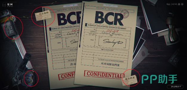 在普通世界当中最后的几个线索是在机密档案里。图中左侧的录音机勋章以及中间的冷杉资料贴纸和右侧下方的探员档案贴纸,也同样为线索。此时在普通世界的29条线索已经全部寻找完毕。