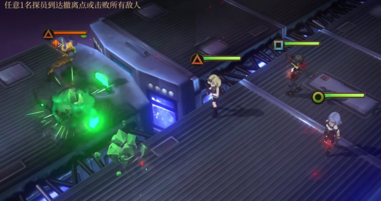 游戏中内置了3种不同类型的职能角色,它们分别是前锋、后排、支援,前锋角色是游戏内攻击距离最短的角色,但是他们能通过触发联结技能来增加攻击效率,这类的角色一般拥有极高的血量和防御值,在游戏内,前锋角色的需求量并不高,但是每一个队列中都至少要配备一个。