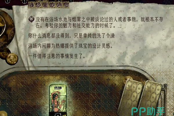 当我们碰到金奢靡之后,可以选择前往浴场探听各种小道消息,通过刷新的办法来摇骰子解锁新事件。当信息框内出现一件值得注意的事情发生的字样,我们就需要慢慢观察下是否是发明家求见苏丹。