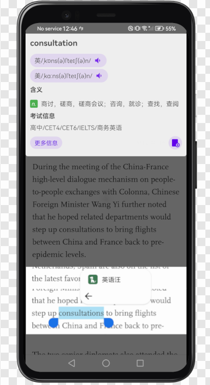 这是专门帮助大家学习英语的软件,不仅支持所学的英语知识翻译。如果有不会的英语句子或者是单词都能通过该应用利用拍照的方式完成翻译,使用起来非常的便利,还能通过积累各种句子词汇的方式,帮助每一个学习英语的人巩固知识,积累更多的词汇量。如果对于英语的音标或者是变体、例句并不是特别熟悉的,也可通过应用帮助大家学习,有很多个性化的功能。