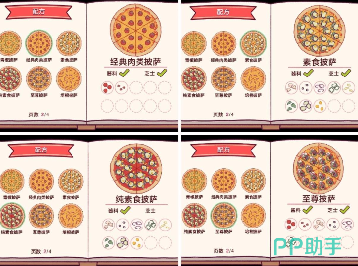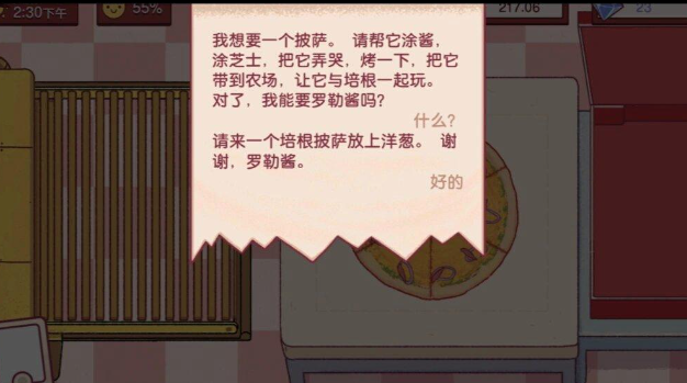 玩家在游戏中是一家披萨店的老板,通过经营披萨获取更多的资金,最终达到开连锁店作为目的,在游戏中有非常多种类的顾客,每个顾客都有自己独特的口味,玩家需要根据每个顾客不同的口味来制作相应的披萨,做出来的披萨符合顾客口味之后可以获得额外的小费,游戏上手非常简单,玩家只需要根据系统指示的原材料点击就可以得到一整个的披萨,最后再进行辅料的添加,每个辅料都是根据顾客口味来制作的,所以玩家需要细心的搭配所有的辅料。