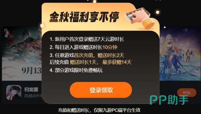 如果你是新注册的用户,平台直接会送给大家免费一周的游戏体验时长,每日都能进入玩的话还能多得10分钟时长。要是对某个游戏首充,则继续送你2天时长,之后的充值也会送1天,最多可以获得14天哦。