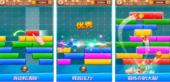 左右移动消除方块的游戏特色十足,玩法内容极其丰富,如果大家对自己很感兴趣的话,不妨点击上方链接下载这些,游戏没有太大的内存,小伙伴们无需担心自己的手机无法下载,而且男女老少皆宜,即便小孩子也能畅享。