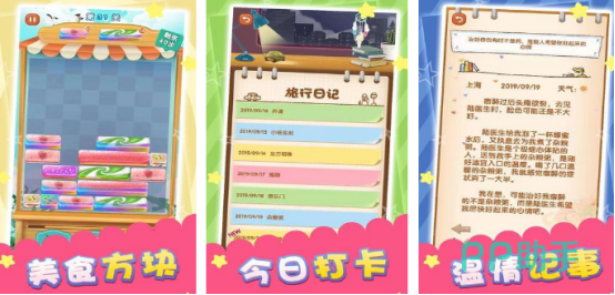 在旅行日记这款游戏当中,玩家本来有一份比较光鲜亮丽的工作,但是因为自己有远大的梦想,因此就辞去了自己的工作,从而走上了环游世界之旅。不论走在哪一个地方,都会感受到独特的美食文化以及异域风情,甚至还会在旅途当中遇到很多志同道合的好朋友。这款游戏的玩法特别简单,在游戏里也将会有很多美食的方块,玩家只要将方块摆放在合理的位置迅速消除就能走遍世界各地。