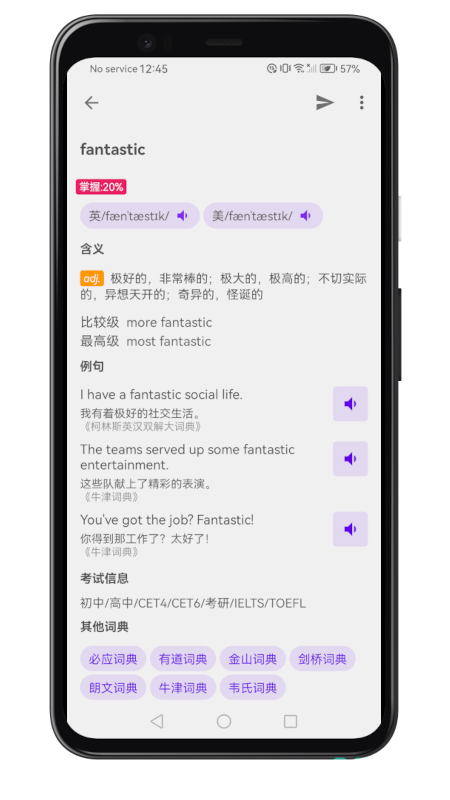 作为热门的英语学习类软件,它拥有丰富的资源,为大家提供了多样化的选择,汇集了大量的教学课程,并且持续更新最新的学习资料,确保大家到时能获取到最前沿的知识内容,大量的字典释义等知识涵盖其中,让小伙伴们快速掌握英语口语。