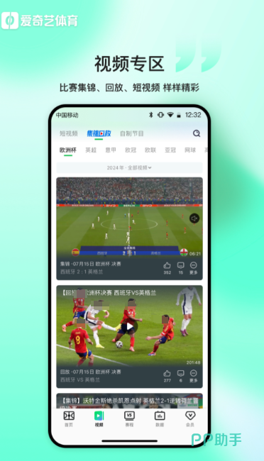 爱奇艺体育这款软件有专业的球赛比赛视频专区,在专区中,各位用户不仅能够查看到热门比赛的比赛集锦视频,而且还有一些回放的完整视频内容,能够满足大家对不同球赛视频的需求。同时借助这个软件,各位用户们还能在实时比赛的现场直播间中,了解最新的现场比赛情报信息,让大家了解最新的比赛比分以及对应的比赛阵容情况。