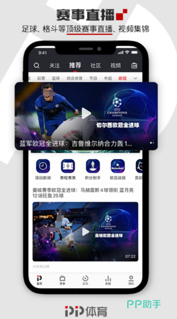 PP体育这款软件依托赛事运营的专业性,为各位用户提供比较稳定的现场直播视频内容,所以大家能够更好地通过视频感受到现场的比赛范围,同时借助这块软件,各位用户们还能加入到更丰富的台球内容,兴趣社区中能够和在线网友分析不同的比赛项目以及相应的资讯内容,帮助大家更好地分析体育比赛项目。
