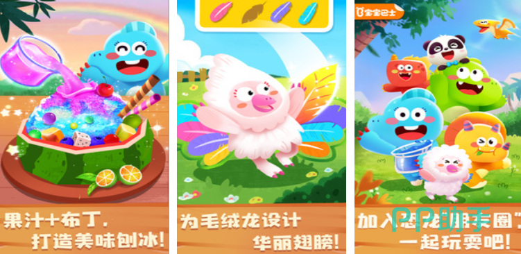 玩家在游戏中和各种恐龙来做朋友,通过提升与恐龙们的好感度来获得游戏的奖励,可以提升宝宝的交际能力,最终可以帮助冰雪龙做果味刨冰,给三角龙织一条大围巾,也可以给花花怪一起过生日,游戏的玩法非常的简单,都是一些和朋友们一起做活动的互动环节,插画式的游戏风格非常符合儿童的视觉审美,可以让儿童在游戏中得到更多的生活知识。