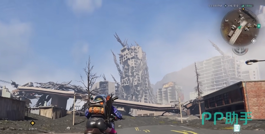 玩家们先选择传送到灰落市这个传送点,到底传送点后,先选择左边较矮的建筑群。这里玩家们要小心在桥下拥有岩浆河,一旦误入会持续性的掉血。利用桥体残骸能顺利抵达废弃的房屋。
