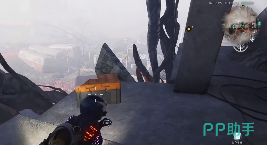 在如图所示这个位置,不仅能点亮锚点还能拿到武器箱。这里附近岩浆较多,面积也较大,尽量用飞翔的方式来前进。