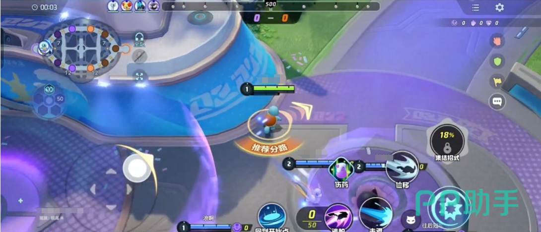 4、分路:地图上有不同的分路可以选择去走,玩家们需要根据宝可梦的类型与特点选择合适的分路作战,比如攻击型宝可梦更适合走中路,方便对上下路进行支援;防御型宝可梦适合走下路;速度型的可以走上路。
