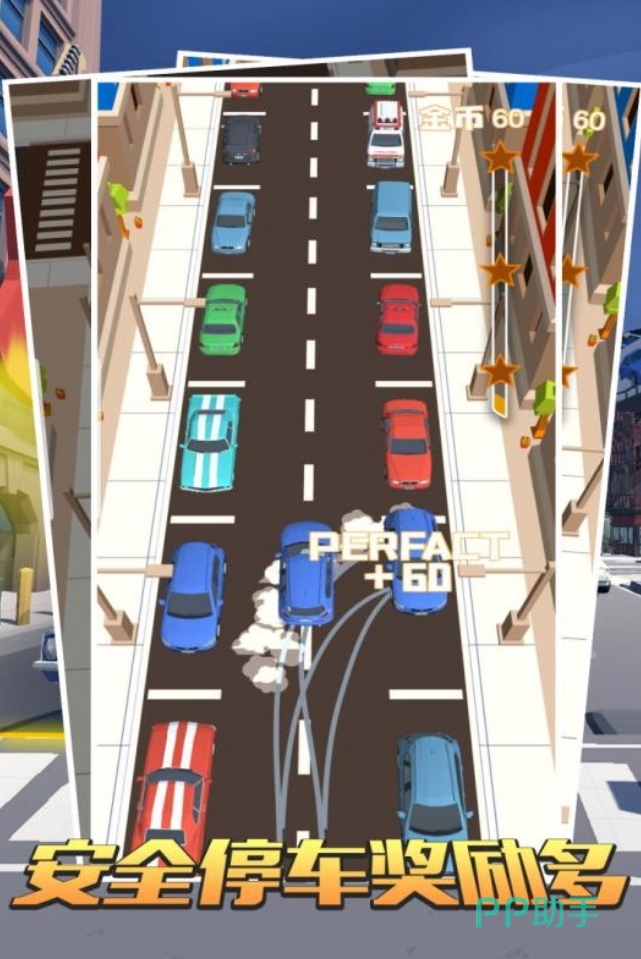 作为一款专注于侧边停车的游戏,玩家们在游玩时不光要操控车辆进行正常的行驶,还要在发现停车位后立刻上前将车辆完成停放,避免车位被他人抢走,是款需要玩家们手眼配合的趣味作品。每次进行停车时都可让玩家们拿到相应的关卡积分,积累起来就能达到相应的关卡星级,玩家们也可重复多次地进行停车挑战,让自己在关卡中能拿到好成绩。
