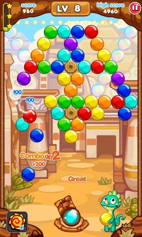 这是一个能让你沉浸其中的休闲泡泡龙射击游戏。游戏中一个个精妙设计的关卡如同神秘的城堡,等待着你去征服。转动大脑和运用智慧,将泡泡准确地发射到合适的位置,让三个以上一样颜色的泡泡一起破碎。这里有上百个任务等你来玩,七种不同的模式,挑战自己的思维能力,为你带来丰富多彩的游戏体验。