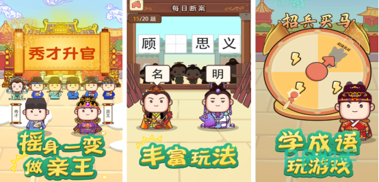 成语在中国的历史当中博大精深,这款休闲益智的小游戏,涵盖的成语内容极其丰富,玩家回答正确之后还能出现成语的具体含义以及成语的由来等等,能让孩子在玩游戏的过程当中积累更多的成语词汇量。游戏包含了多种不同的玩法,比如有看图猜成语或者是成语接龙等等,玩家可以根据自己的喜好去选择。