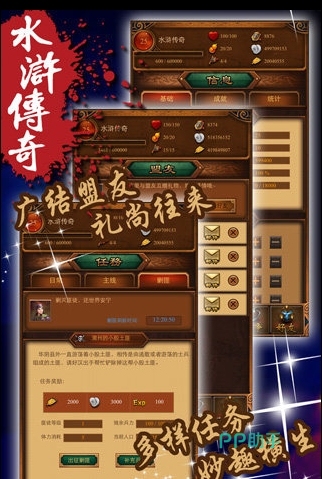将水浒传的故事背景与等相结合,带来一种新颖的游戏体验。元素的加入为游戏增添了一些神秘色彩的剧情发展。我们操控角色在场景中与敌人战斗,需要运用角色的技能武器以及策略来战胜对手。可以完成任务战斗等获得经验和资源,用来提升角色的属性,使角色变得更强。基于水浒传的故事进行改编,拥有丰富的剧情任务,让我们深入体验到水浒传中的故事和人物。