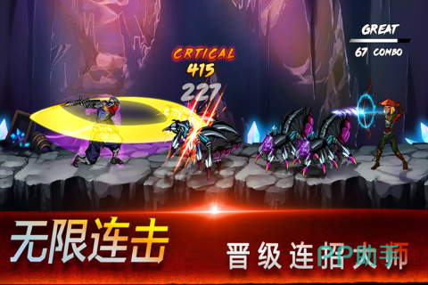 这是一款格斗类的忍者游戏,这款游戏用双操纵杆的模式去操作游戏,游戏中有很多武器可以供玩家使用,玩家的技能有发连招的可能,享受到格斗游戏的刺激。
