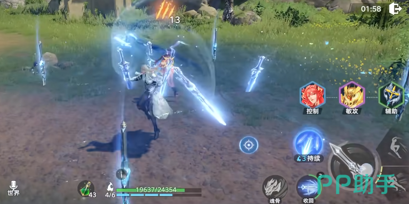 他的普通攻击可以让他凭空召唤一悬空的飞剑,随着不断挥舞对前方敌人造成多段伤害。到了最后几下还会造成致命一击,普通攻击范围较远,可远距离输出,十分给力!不过缺点是挥砍速度较慢,面对敏攻系魂师时比较难打。