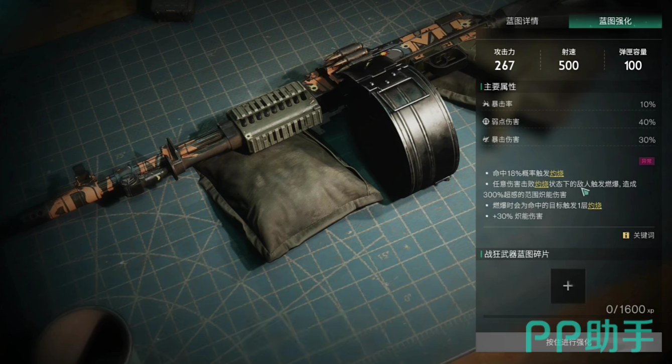 连环爆破发射器的基础数值为,攻击力267,射速500,弹夹容量100,连环爆破发射器拥有10%的基础暴击率,针对于弱点的伤害高达40%,暴击伤害拥有30%,每一次的攻击都可以造成灼烧buff,在连续攻击达成下,任意伤害只要命中了敌人,都可以造成300%的爆破火属性伤害。