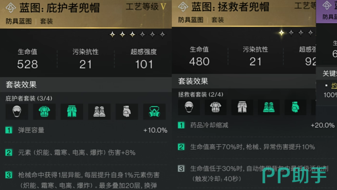 在防具的选用上面,可以选用庇护者套件,庇护者套件可以极大程度的提高异常属性的数值,当收集全部了庇护者套件之后,玩家的异常属性攻击将会提升30%,不过如若玩家并未将庇护者套件全部收集完毕,在手套方面可以使用老练手套来替换。