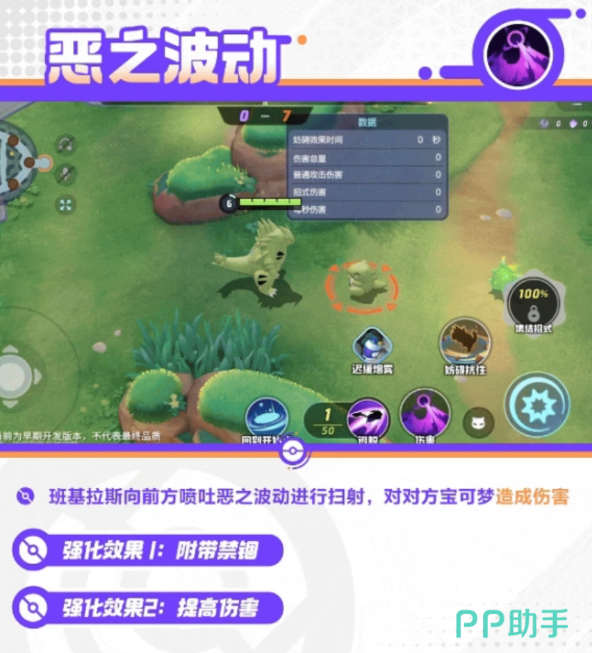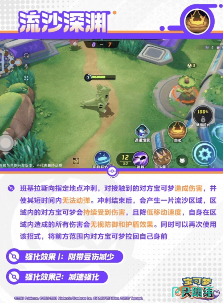 班基拉斯的被动技能沙暴也是其强大的来源之一。当班基拉斯在场时,会刮起沙暴,对周围的敌人持续造成伤害,并提高自身的防御和特防。这个技能不仅增强了班基拉斯的生存能力,还为其提供了额外的伤害输出。