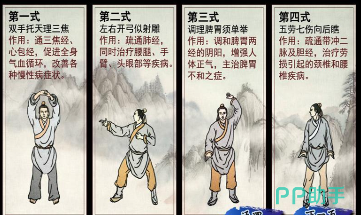游戏内不仅为玩家们展现了每一个动作,还对这些动作进行了详细的介绍,小伙伴们可以在功效说明中了解到每个动作的具体作用,如果小伙伴们有某些症状和这些功效对得上的话,那么也可以多重复几次相对应的动作,进行针对性的练习哦。