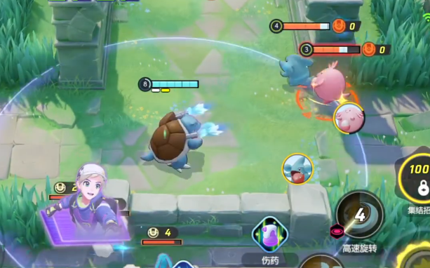 这个角色操作起来还是有一定难度的,所以不建议新手玩家在初期就获得角色,可以等到对游戏熟练之后再去尝试操控水箭龟加入战斗,最推荐让这个角色走上路这样才能展现出角色的战斗能力,在攻击的时候,如果连续使用三次普通攻击,那么就能转化为特殊攻击,角色的一技能激流更是可以在角色体力30%以下的时候让水箭龟获得体力值的20%作为护盾来保护自身,并且这个角色使用集结招式旋风激流炮更是可以直接发射回旋状态的水流,可以给对方宝可梦带来大量的伤害。