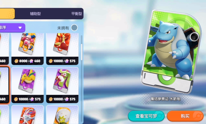 新手在完成教学任务之后,可以在5个宝可梦角色里面任选其一,只不过这些角色里没有水箭龟,如果想要得到水箭龟这个角色的话,最直接的方式就是在游戏里使用金币或者宝石购买,这些角色的价格一般都不一样,大部分都在6000~1.2万金币左右,除了直接使用金币购买之外,还可以消耗钻石购买,不过需要大家注意的是角色除了最常规的外观之外,在游戏里还可以调整成其他的皮肤,假如想要更换皮肤的话,可以等到后期去商店里再用这些宝石去购买,皮肤前期可以先用金币去购买这些宝可梦角色。
