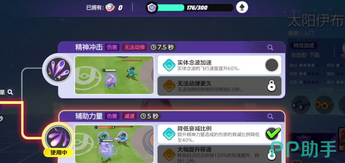 知识增幅器则侧重于团队运营收益,知识增幅器在提供移动速度的同时,还能够将太阳伊布获取的经验值平分给队友,从而帮助其他的队友尽快的抵达六级,由于追击输出玩法的太阳伊布比较依赖队友的控制能力,所以队友的等级提升也是相当关键的。
