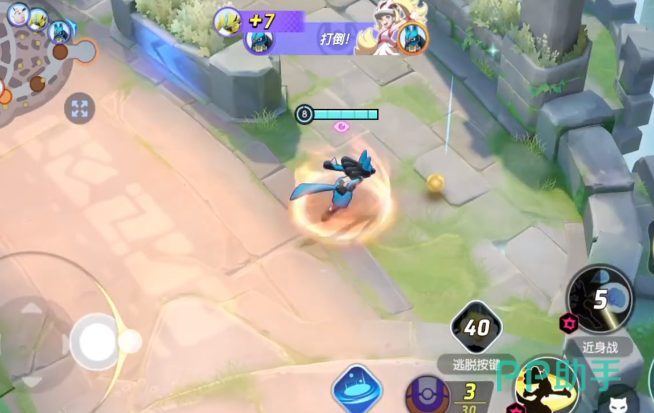 路卡利欧这个角色在对战的时候可以使用一技能电光一闪,迅速突进到对方身前,然后通过攻击给对手带来伤害,二技能名为彗星拳会使用拳头快速攻击对方,在这个过程中还能带来一定的击退效果,如果在对战的时候体力已经达到了较低的情况,那么就可以利用不屈之心提高自身的防御能力和移动速度,以便角色快速离开当前的对战环境。