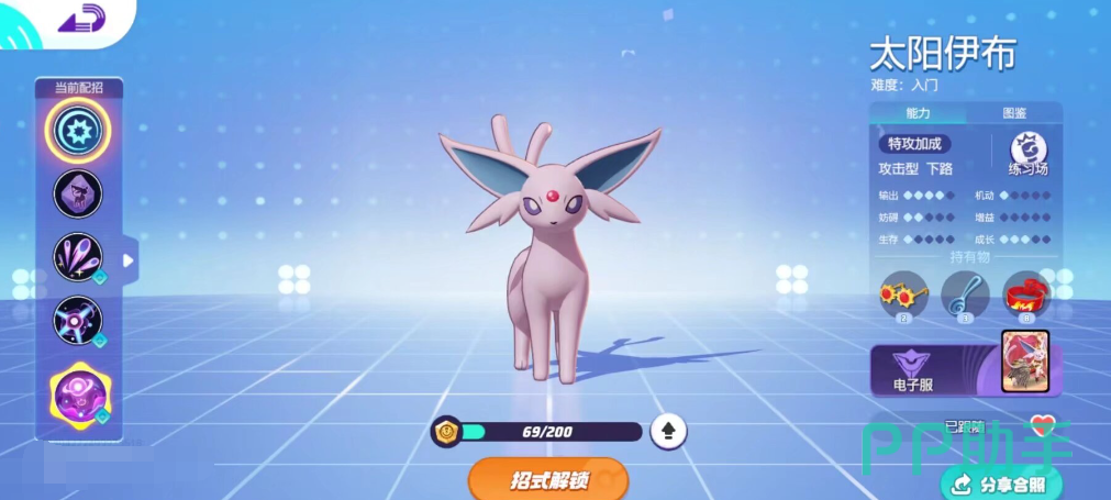 太阳伊布的定位是攻击型特攻角色,其快速的进化能力使其在战斗初期就能迅速提升实力。在3级时,太阳伊布就能进化并升级其一技能或二技能中的一个,太阳伊布的快速进化和技能升级,使其在团战中能够迅速打出大量伤害,但同时也要注意保持合适的输出位置,因为其较弱的生存能力意味着不能承受过多的集火。