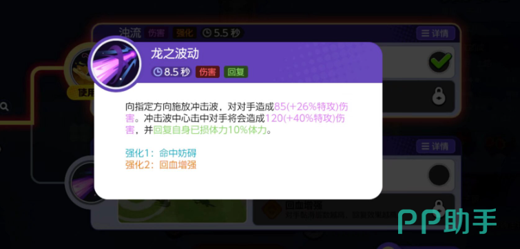 泡沫技能在升级后可以选择成为龙之波动或浊流,这两种技能都有其独特的优势。龙之波动提供了强大的输出和体力恢复能力,使黏美龙在战斗中能够持续施加压力,而浊流则赋予了黏美龙更强的防御和生存能力,使其在团战中能够更好地承担坦克的角色。