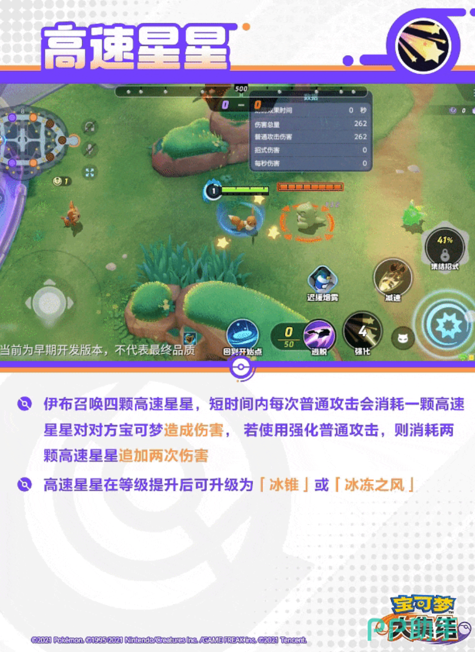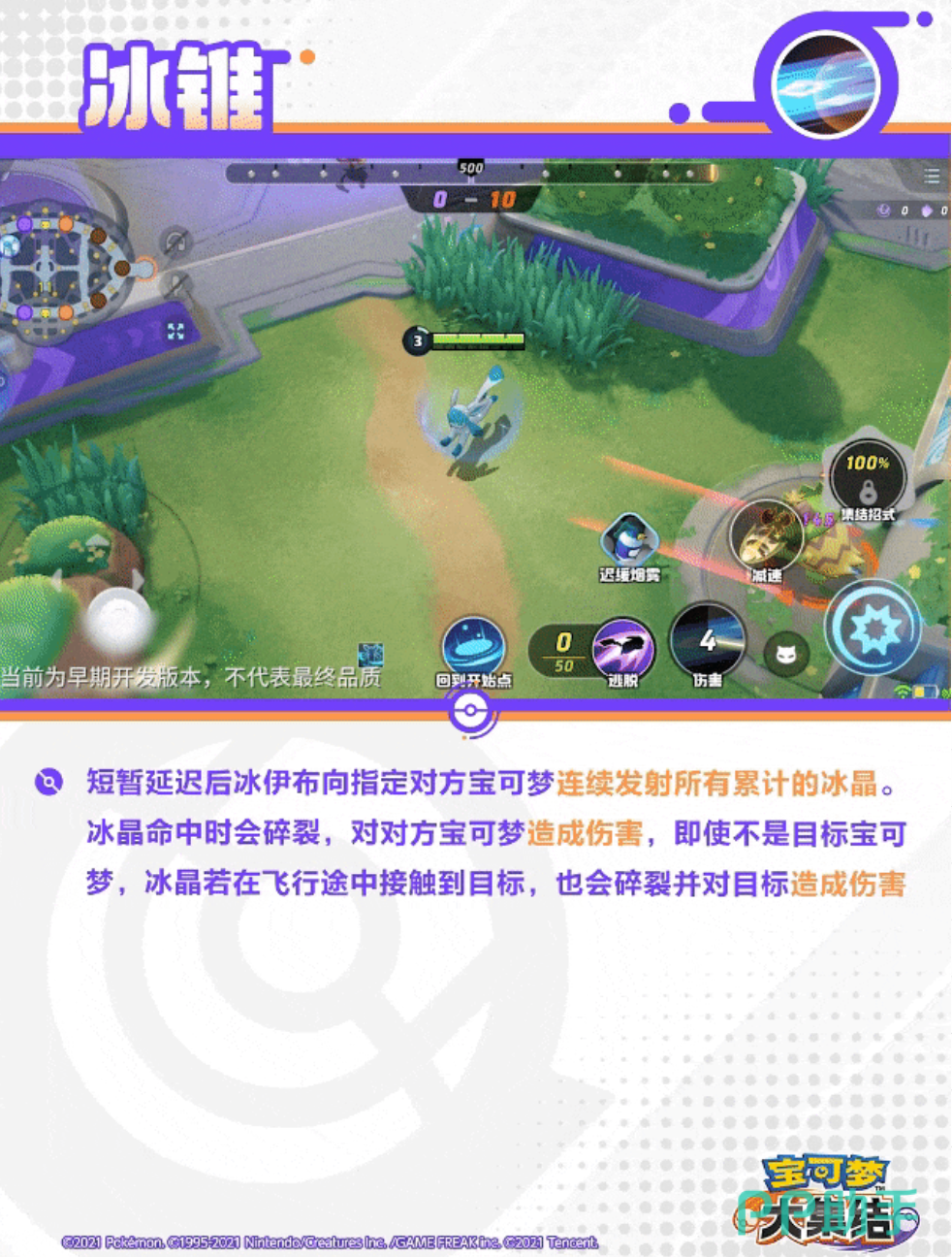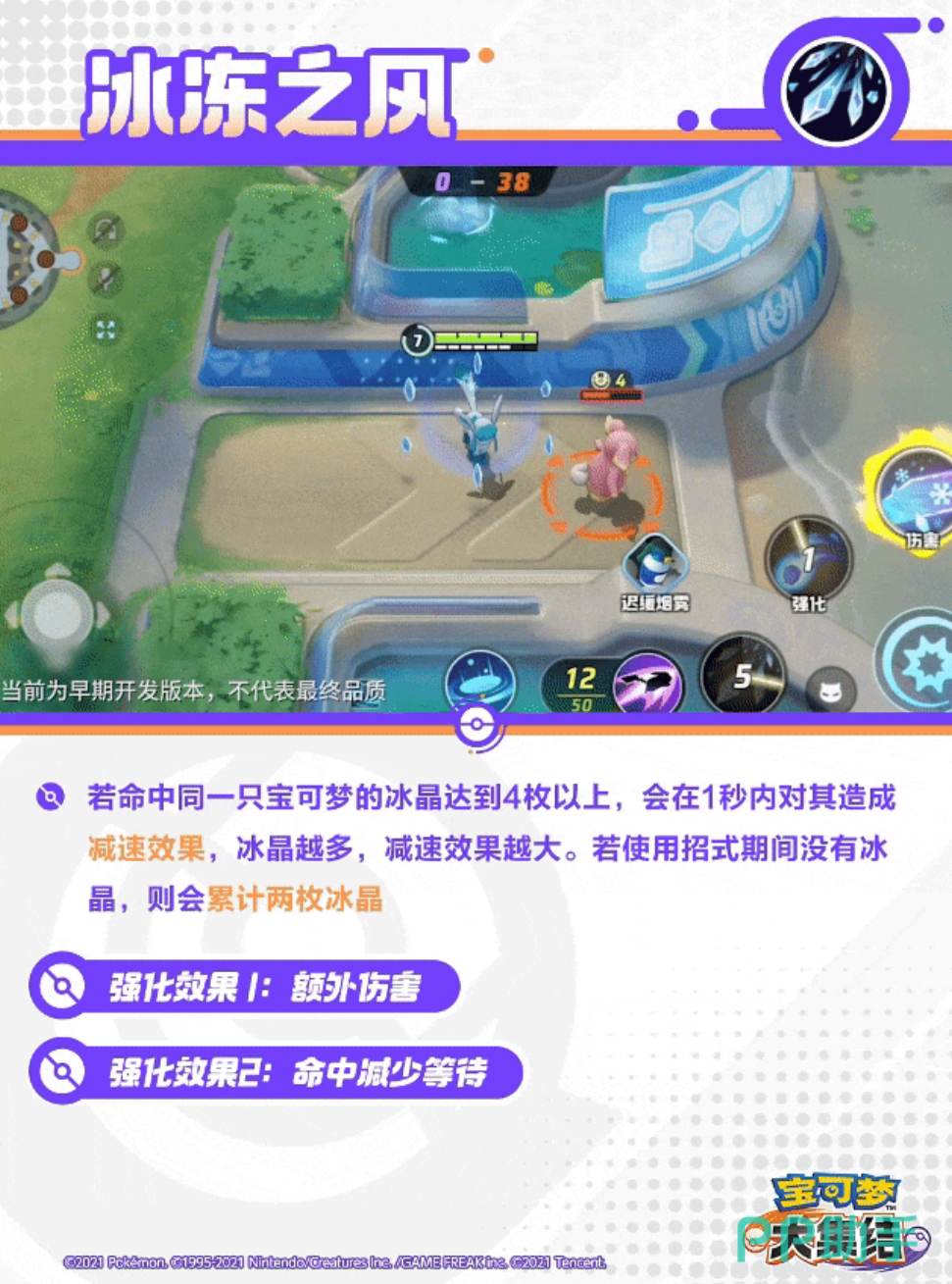 大招冰晶舞台更是冰伊布的核心,冰伊布会在周围生成一个冰冻区域,对区域内的敌方宝可梦造成伤害并附带冰冻效果。同时冰伊布的攻击力和移动速度也会得到提升,可以说只要使用的好甚至完全可以逆转战局,技能机制方面小编十分推荐,评级为5星。