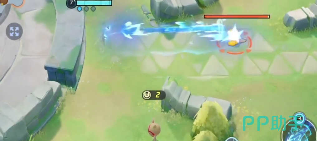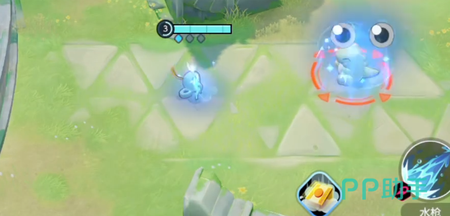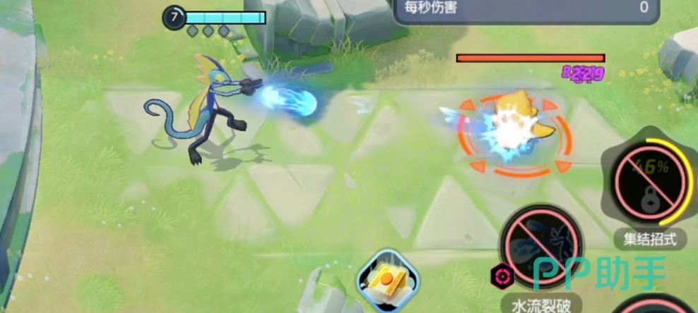7级2技能分支2“水流裂破”,指定一个目标发射多个水弹造成特伤,1.7秒内最多发射8个水弹,发射的时候减速60%,伤害逐步提升,如果命中同一个宝可梦后续伤害提升20%,使用1技能杂技可以减少3秒冷却。