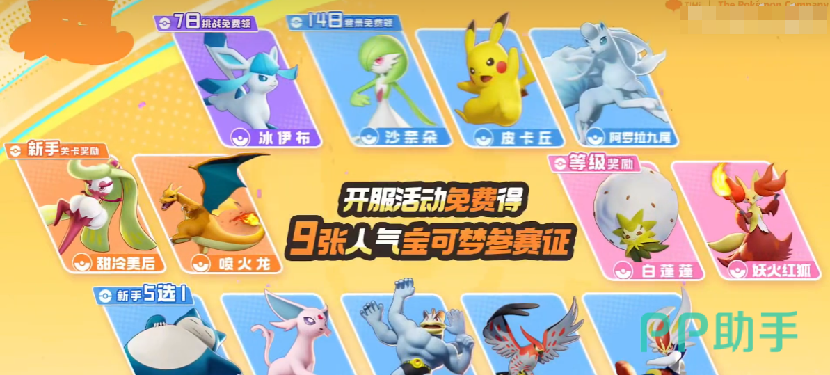 此外参与开服活动更是有机会免费得到9张人气宝可梦参赛证。7日挑战免费领冰伊布,14日登录领沙奈朵、皮卡丘、九尾,新手关送甜冷美后、喷壶龙,训练师等级阶段奖励送白蓬蓬、妖火红狐。更有新手5选1,包含卡比兽、光伊布、怪力、裂箭鹰、闪焰王牌。