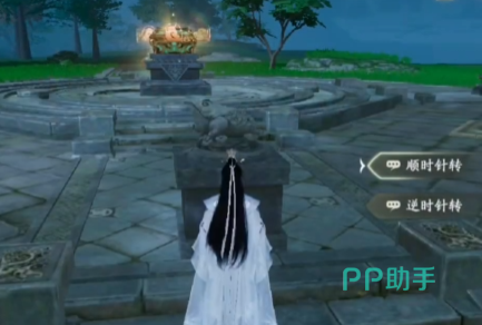 拿到后就来看最后一个宝箱,想要拿到它的话,大家需要前往中间的平台上,在这里会看到四只石蟾蜍雕像,看到后大家需要将四只石蟾蜍的面向调整,全部调整为对着中间,之后会有一个npc出现,出现后与他对话就可以解锁中间的箱子了。