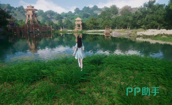 之后需要站在乌龟石像上,然后利用水灵去击打这几个平台,打完后就可以拿到第一个宝箱了。拿到这个后,大家需要前往蟾蜍雕像旁边,来到这里后会看到两个身上有开关的石龟,大家需要在附近找两个木头箱子放在石龟上,之后就可以解锁然后获取第二个箱子。