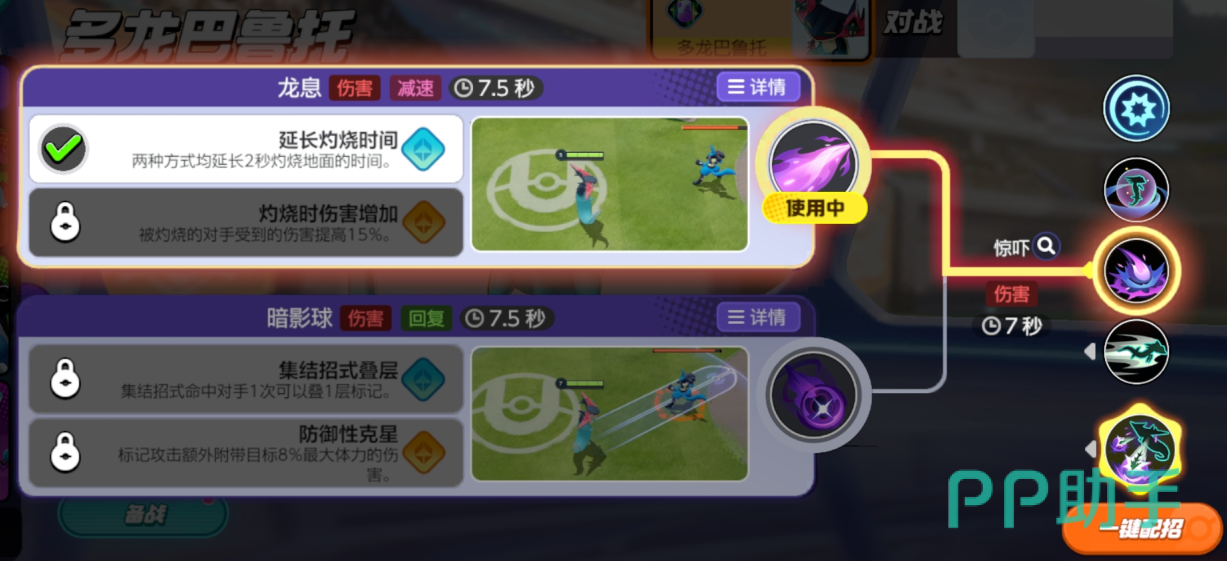 可以看得出多龙巴鲁托的输出结构中普攻占比是较多的,攒被动能量是它的核心机制,虽然普攻占比多,但它并不是那种可以站撸的射手类宝可梦,要灵活利用2技能的龙之舞来调整身位。