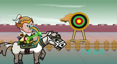 在色彩柔和的页面中,玩家以黄忠的身份身骑白马射箭。黄忠的人物形象多变,玩家可为之搭配黄色和蓝色等经典服装。马的性能也有所更改,随着等级越来越高,玩家可选择更加稳定性能的马进行射箭。每一关卡中的靶子的数量不定,玩家完成所有射击挑战后才能通关。