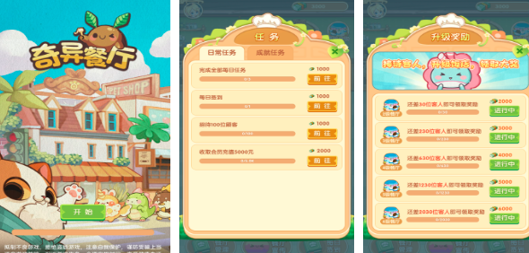 名为奇异餐厅的小游戏,动动手就能成为小老板。雇佣小动物作为员工,并研发新菜品,不管是经营理念还是餐厅的装修,包括食物的制作都很重要。每天的任务就是照顾客人的味蕾,让客人满意了达到收益。还能前往日常任务领取任务后,就要按时做任务。招待客人还要升级饭店,让你的生意爆棚。