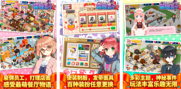 超级可爱餐厅经营游戏,精心照料餐厅,和可爱的萌娘一起布置小店。雇佣员工后就可以亲自安排所有事务,让里里外外的大事都由你来料理。浪漫的元素,可爱的萌娘角色,在助理的陪伴下,餐厅的生意会越来越好哦!还能交到很多的好朋友,餐厅风格可以是小清新,也可以是比较精致的风格。有多个主题以及神秘的事件都可以在这里体验无限乐趣哦!